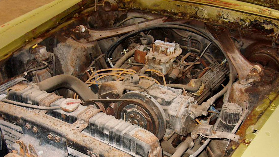It is nice to see the factory air conditioning in place, and even with a belt in place I’m betting the system doesn’t work (although the engine runs well according to the seller, believe it or not!). I guess the question here is whether or not someone is willing to do a lot of rust repair and benefit from the running engine. I’m not sure that’s the way I’d go–I’d rather have a more solid shell and deal with mechanical issues. What do you think?