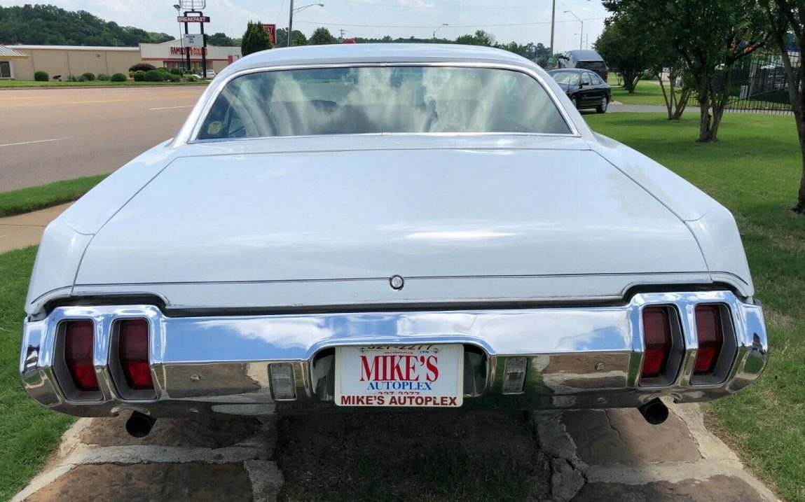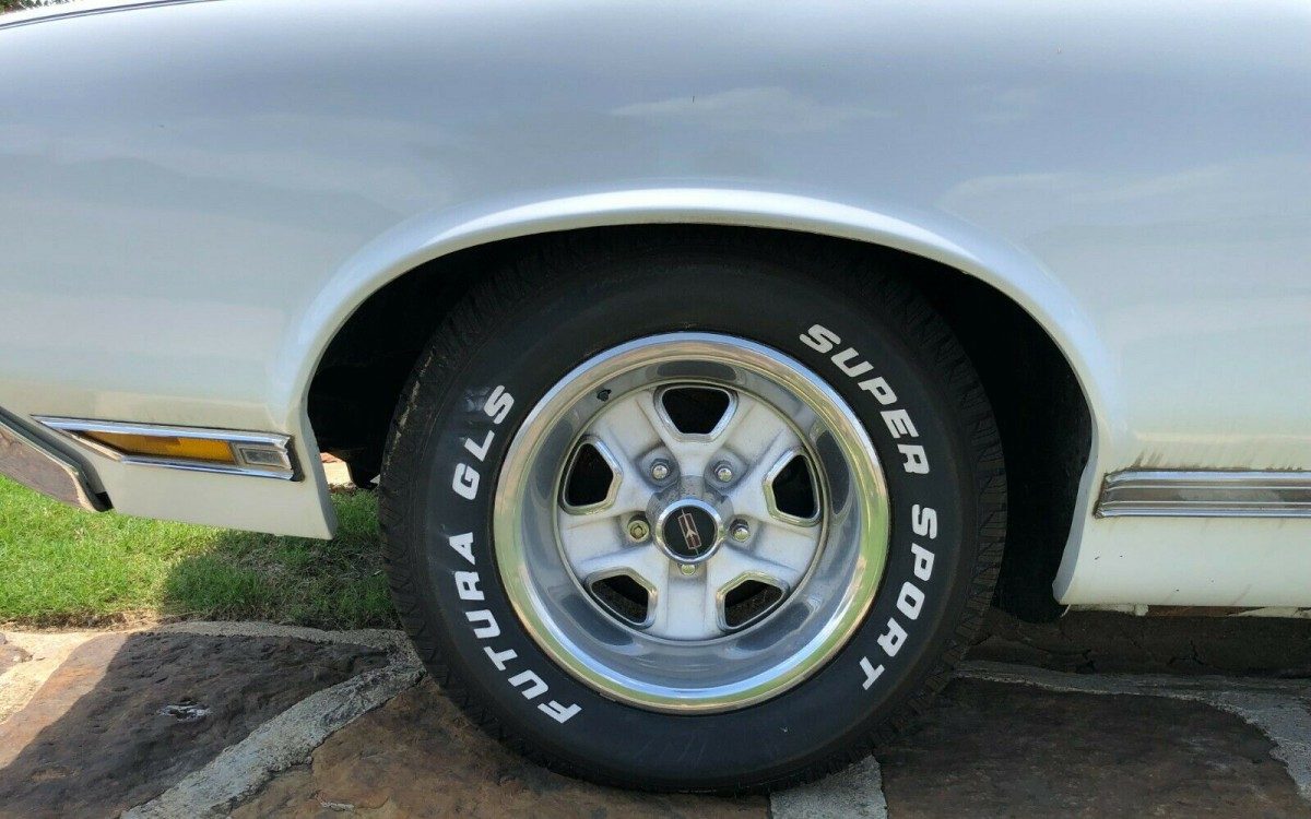 The listing for this example is essentially detail-less, so this will be an interpretive exercise. The mileage on this Olds is listed as 10K but not proclaimed as such so it is probably 110K but the car shows extremely well. While the Polar White finish has good depth, there are indications of a respray, not unusual for a 50-year-old car. There is no significant sign of rust or rot, though something is going on where the driver’s side quarter meets the rocker panel. Whether there ever has been corrosion and it has been corrected, it is hard to say; the body and underside would require a close inspection to determine that. The fenders, doors, quarters, and bumpers do appear well-aligned however and probably free of any major crash damage. Of note is the rear bumper, it is a 442 styled piece with cut-outs for the tailpipes. It is a common component that can be purchased today from many different suppliers but it just doesn’t look quite right without the chromed “trumpets” attached to the pipes. The Super Stock Wheels are always a nice addition to any Oldsmobile.