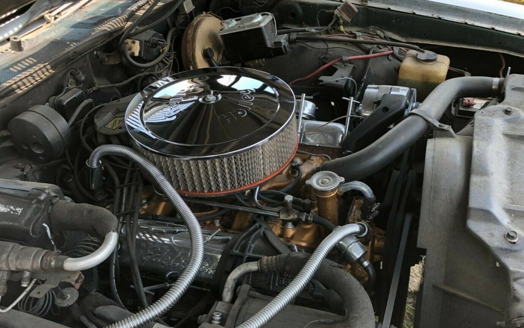 Notice the dual feed Holley Carb. I wonder if someone swapped in a 455, cannot tell without measuring the intake manifold width.