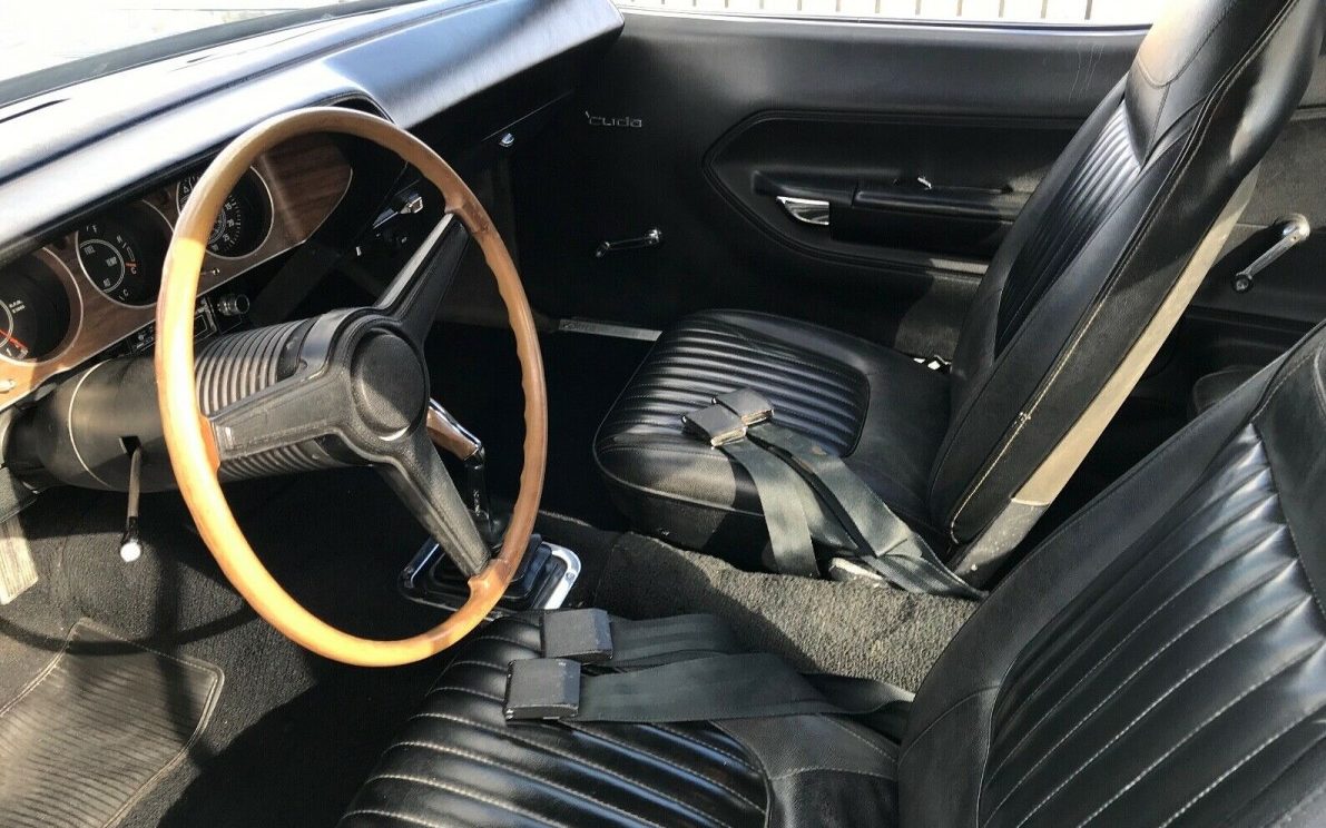 Under the hood is Mopar’s fantastic 275 gross HP, 340 CI “LA Series” engine. Maybe they were rated at 275 gross HP but 325 seems more fitting based on the way they run, and they do run! To quote the seller, “The 340 4-Speed ‘Cuda Starts, Runs, Drives, Shifts, Turns, Stops in Very Good Working Order in Everyday traffic on Surface