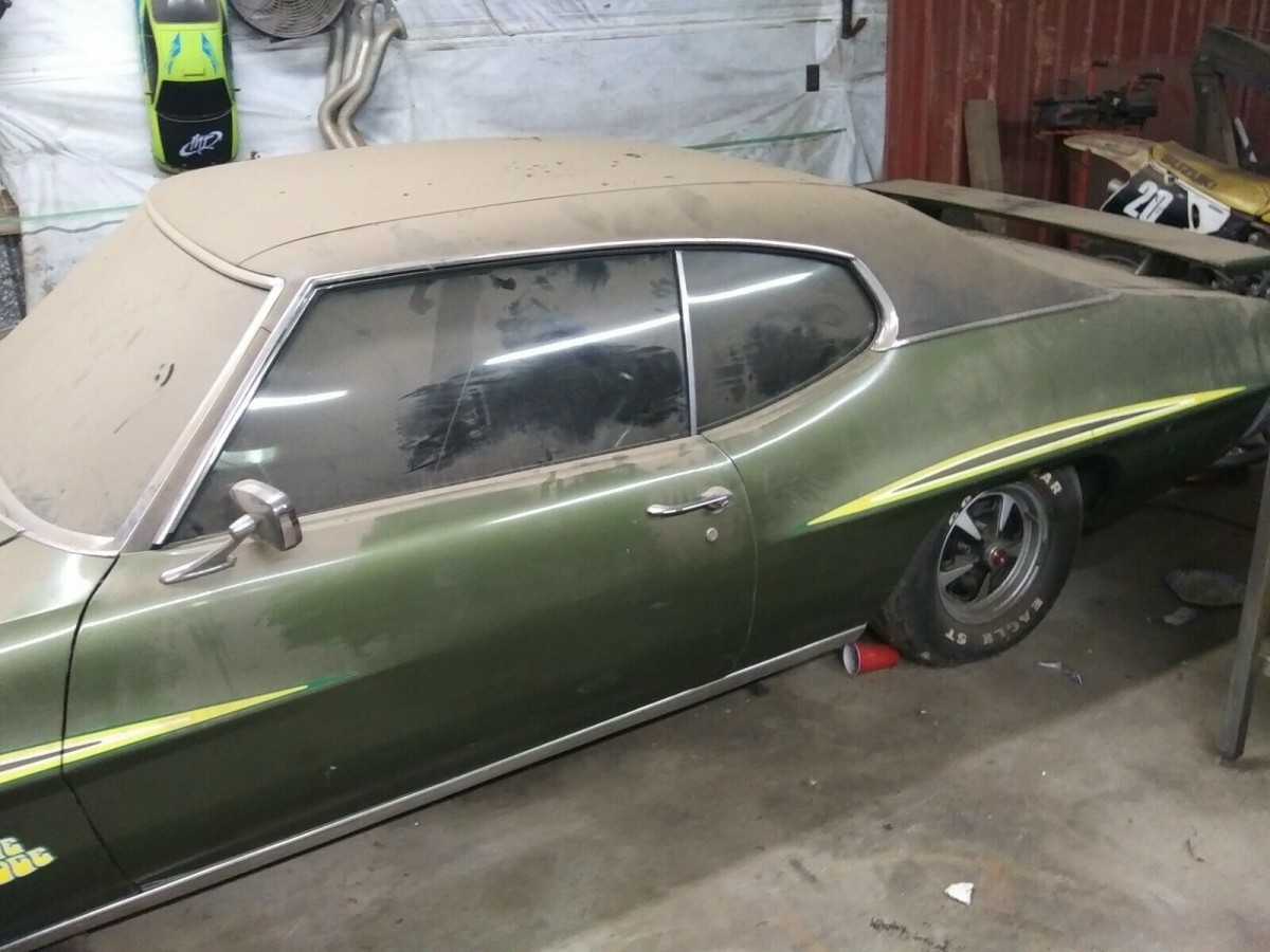 It has been said that a picture is worth a thousand words. If this is true, then the owner of this Judge must be a pretty quiet type. What we receive is a total of four photos, along with a description that runs to a staggering eleven words. However, scrutinizing the pictures does allow us to draw a few conclusions about the vehicle. The signature paint color for the 1970 Judge is undoubtedly Orbit Orange, although buyers could choose any color within the GTO range. In this case, we have a Pontiac that is finished in Verdoro Green with a Black vinyl top. It is hard to be sure whether there are any major rust issues present in the vehicle, but there are some very obvious bubbles under the vinyl, especially in the filler panel below the rear window. The state of the floors and lower body extremities is unclear, although it does appear that the paint might be in reasonable condition below all of that dust. Otherwise, the Pontiac seems to be complete, with the correct rear spoiler, graphics, the oh-so-cool hood tach, and Rally II wheels.