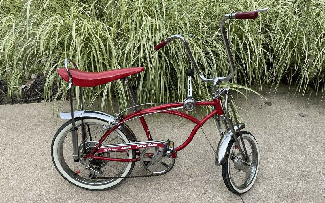 Had an Apple Crate when I was a kid. Swapped out the slick for a “knobby” tire so I could ride it in the woods across the street from our house and do jumps off a sheet of plywood on cinder blocks. Had lots of fun but broke the smaller bars on the front forks. Oh well, If I only knew then what I know now.