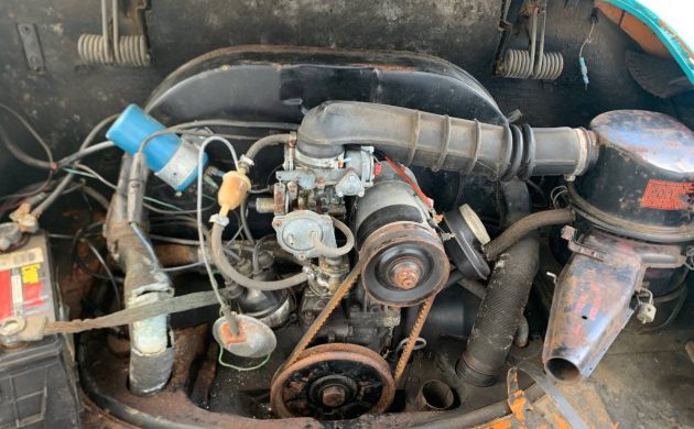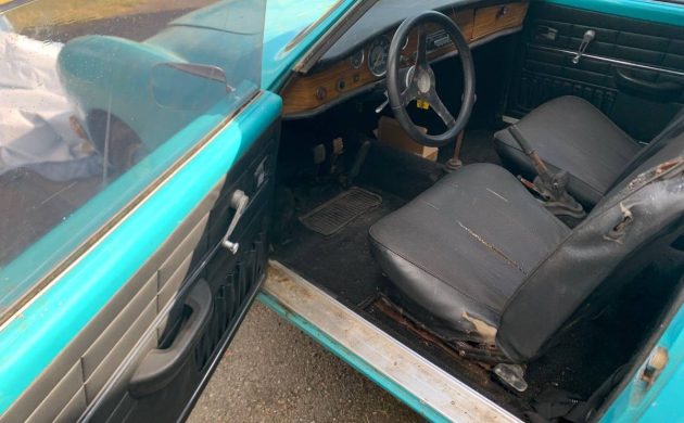 The Karmann Ghia was created in secret by an extraordinary man who began his impressive career as a WWII hero, operating behind enemy lines to collaborate with the US. Luigi Segre later became an engineer, working for Ford and then Siata. He joined Carrozzeria Ghia in the late 1940s and became acquainted with Virgil Exner at Chrysler, as well as Wilhelm Karmann, who was building the Beetle cabriolet. Karmann wanted to produce a “halo car” for VW. Without revealing any details about his project, Segre drew on his experience working for Chrysler, building a stylish coupe on a Beetle platform. He knew the corporate personalities well enough to understand that VW was too conservative to give the green light based on a sketch – thus the subterfuge. Of course, VW was enthusiastic about the new model; the first Karmann Ghia rolled out of Karmann’s factory in 1955, equipped with a rear-mounted, 1200 cc air-cooled flat-four. By 1970, displacement had grown to 1600 ccs and output had reached 60 hp. This car is equipped with a four-speed manual. The driving experience is not sporty, but neither is it sedate. The shift linkage can be reluctant – the new owner of this example will have a chance to make improvements there, since this car doesn’t run; a mechanical rebuild is probably on the menu. The engine does turn, however.