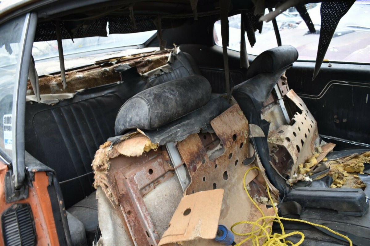 This is one rough car, so bringing it back to a like-new state will be expensive and time-consuming. The floors, quarter panels, fenders, and more have all been subjected to considerable rust or damage. The driver’s side fender looks as though a pry bar was taken to it. The hood has a kink in it but may be salvageable. While all of this is not encouraging, we’re told the frame is good with just some pitting here and there. And all the glass is said to be good except for the windshield.