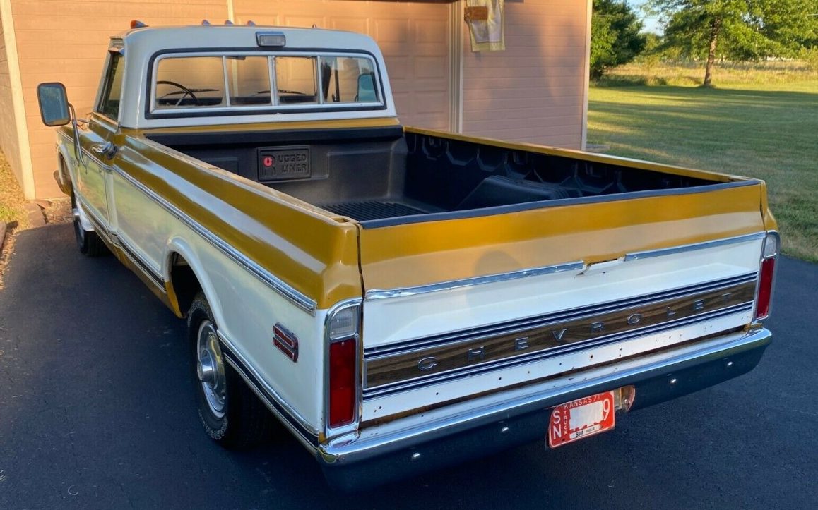 My family has had several 72 C10’s over the years. This one reminds me of the copper and white original paint 71 Cheyenne Super with 62k miles my late brother bought about 15 years ago. Identical options except it also had a factory tach, tilt wheel, bedside toolbox and dealer add on cruise control, ac delco rear air shocks and onboard air compressor. About the only thing it was missing was bucket seats/ console. Only thing not original was the seat cover. It was re done very nicely in a parchment leather like material. He bought it for $4500 and put new shocks and tires on it and drove it to Virginia. He drove it sparingly for a few years and fell on hard times. He did some minor repairs like installing a new headlight harness, i stalling a nicer used front bumper he came across and tuning it up Sold it for $15k. I restored a 71 GMC swb stepside “stripper” farm truck 250 6 cyl 3ott manual brakes and steering radio delete that i bought for $1000 in 2000 had $6k in not counting all my time and sold in 2015 for $10k to buy a $500 72 Chevy swb step with 350/700r4 factory buckets tilt tach, Vintage air, which was sold to build a house. Had $10k in it not counting all my time. Sold it for $20k. Only thing farmed out on both trucks was final body work and paint and seat upholstery. I have a 70 Longhorn now. These trucks are better than money in the bank if you don’t overpay