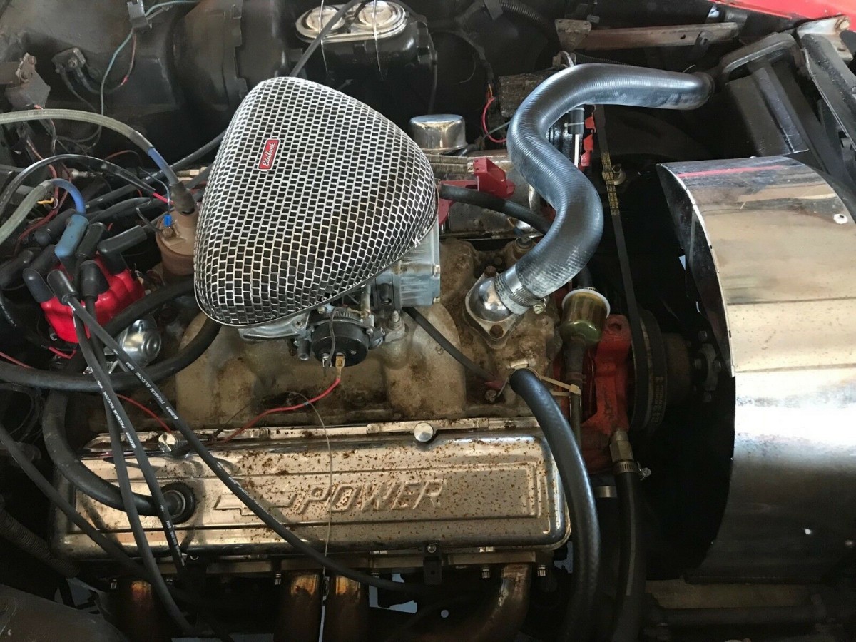 Look at that Holley carb, the aftermarket valve covers, Edelbrock air cleaner, and custom fan shroud. Someone put a lot of time and effort into this car, but for whatever reason, it sat all this time.