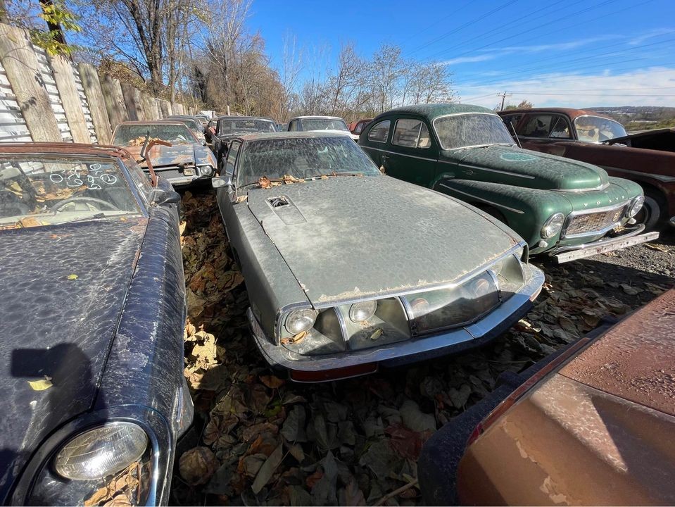 Citroën cars were always known for their strides in innovation and safety. The sporty SM coupe used a 2.7-liter V6 engine at first and could be had with either a 5-speed manual or 3-speed automatic transmission. If you’re thinking of rescuing this one, don’t expect a title and plan on a delay in picking it up as other broken vehicles surrounding it will have to be moved to pull it out. More than 200 cars are featured in a presentation provided by the seller (that you have to see) although many of them have already been sold. Go here to check out everything.