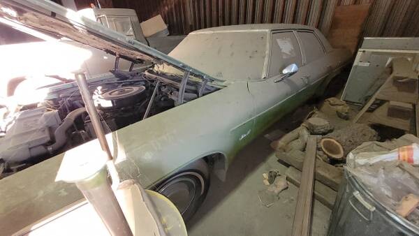 This one’s been sitting in a barn for a long time, awaiting attention with a large collection of cars. Now the owner has decided to let it go. It’s got a huge engine—455-CID—and air conditioning. It ran when parked, so the first thing you’d naturally do if inspecting, or after you buy, would be to attempt to turn it over. If that goes well, why not start it on some fluid? You’ll need a battery to do that, no doubt. The car shows 7000 miles, no doubt 107,000, but that shouldn’t concern you at all. The body, what’s not covered in dust, looks solid, and the engine is again dusty but appears unmarred. What that can mean, and hopefully does, is that the engine has been taken care of. It will need the typical soft parts and, it is specified, a transmission pan seal. Hard not to think that that simple maintenance item might have grounded it, but in any event, it’s time for the hibernation to be over and for someone new to enjoy cruising this Delta 88.