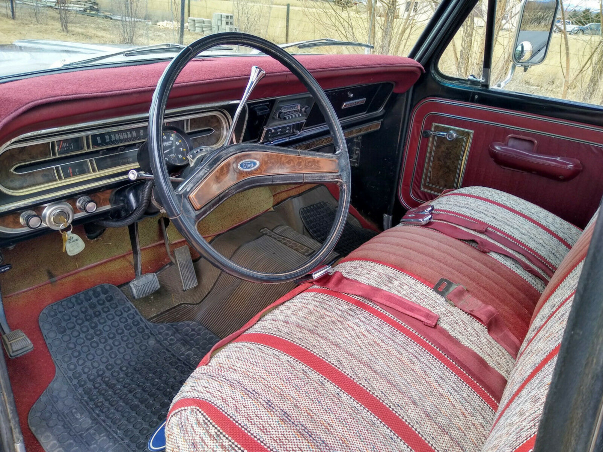 The original owner purchased the Ford new back in August of 1971. When he took delivery, the F-100 came equipped with a 390ci V8 and a 4-speed manual transmission. He drove the Pickup on a regular basis, but when he retired, he decided to give himself a retirement gift. He had a local shop build him a 1967-vintage 428ci V8 and a C6 automatic transmission, and had these slotted into the engine bay. What he did retain are the original power steering and power brakes. It isn’t clear just how much power this replacement engine produces, but you can be pretty sure that it would be significantly more than the 390’s original 255hp. The engine was treated to a Melling cam, an Edelbrock intake and 750cfm carburetor, along with tubular headers. I think that a power figure north of 300hp would be a fairly conservative estimate. The owner states that the Ranger runs and drives really well, and isn’t short of power. I have included a video at the bottom of this article of the vehicle running and driving, and it does sound really sweet and strong.