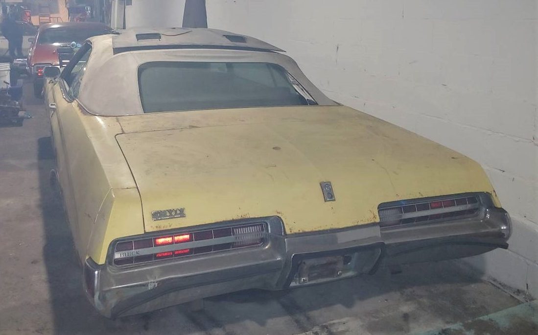 The seller’s Buick has only had two previous owners. The original buyer sold the car after two years and apparently missed it so much that he bought it back two years after that. The last time the car was registered for highway use was 1990. We don’t when the seller acquired the vehicle, but it seems to be in fine company with some other ‘70s GM iron in the garage. As the photos will attest, rust is a problem, but the hood and trunk lid seems to have caught the worst of it. The original buyer paid extra to have the car painted Sunburst Yellow, a color from the Skylark playbook. We’re told that just 33 of these cars were selected in this color. The buyer will receive a mint NOS passenger side rear quarter panel, which suggests that sheet metal needs replacing.