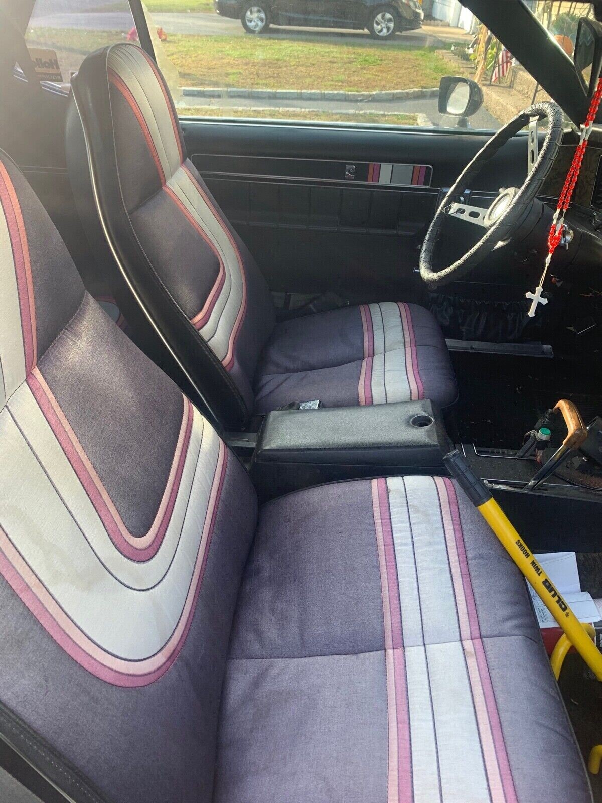 But boy, that Cardin package. It was an interior trim accent job that appeared on just over 4,000 cars, built in 1972 & 1973. Multi-colored stripes (red, plum, white, and silver) flashed over a black background, running across the seats, up the doors, onto the headliner, and down to the rear seats. Just so nobody mistook this for anything else, a Cardin crest was placed on the front fenders. Was it attractive? Well, it was a standout, let’s just say, and now, it’s rare, adding just a little touch of something different to your Javelin, if you happen to have it installed. The condition on the interior of this car is slightly off concours, apparently, with the seller noting that the interior is a little faded and has some staining.