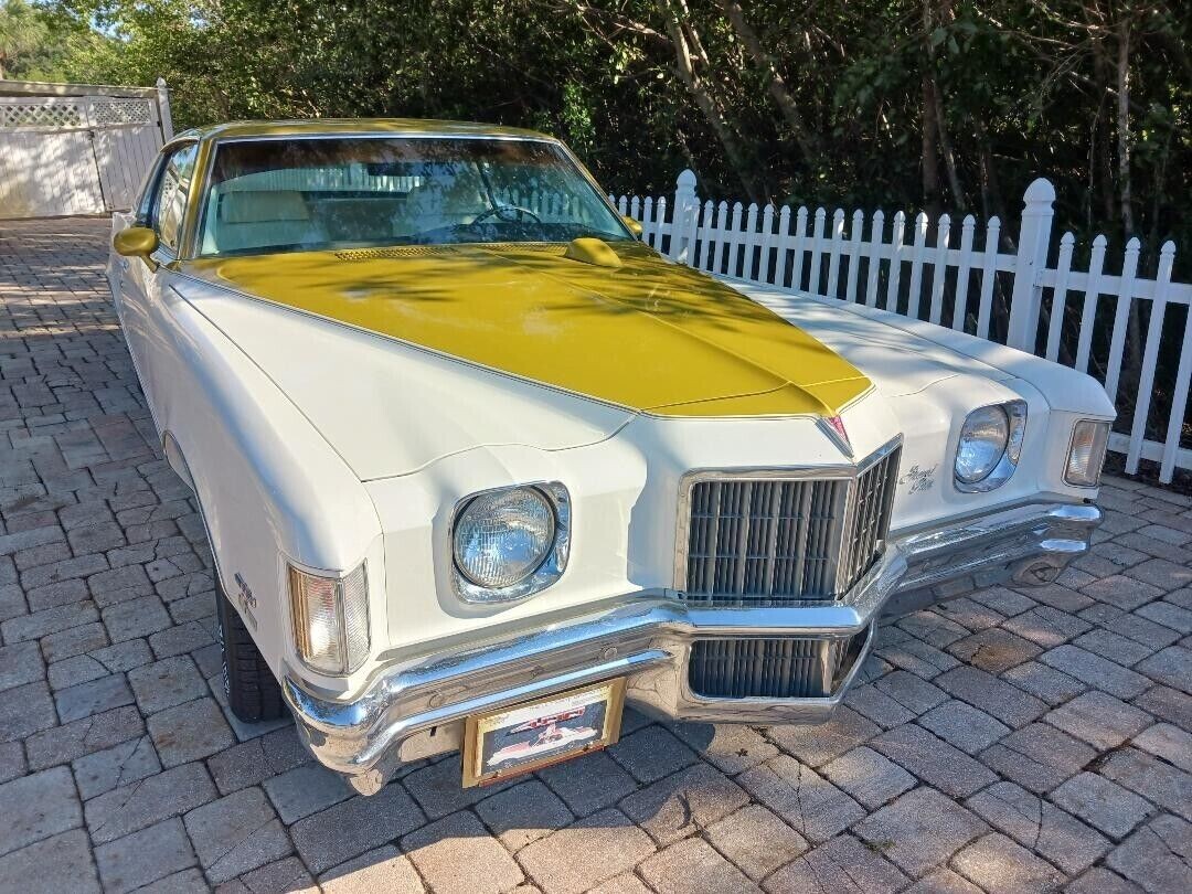 The “personal luxury car” niche – four-seaters with sporty characteristics and high-quality trim – was in full swing by the time the 1970s rolled around. John DeLorean contributed to the trend when he redesigned the Pontiac Grand Prix in 1969. This third-generation Grand Prix was placed on an intermediate platform, shorter by three inches but with the longest hood Pontiac ever offered. Meanwhile, as this new car evolved, George Hurst, running Hurst Performance, was yearning for a special-built Pontiac to carry his badge. Ace Wilson of Royal Pontiac in Royal Oaks, Michigan did something similar in the 1960s, taking Catalinas and GTOs to the track. Hurst’s interest soon produced the SSJ package, which was a specially trimmed Grand Prix. Here on eBay is a reproduction of one of these rare cars, a 1972 Pontiac Grand Prix, bid to $27,800. This car is located in Clearwater, Florida. We’ll review the similarities and differences between the seller’s creation and the real deal. The basics are here: these cars were usually Starlight Black or Cameo White, with the hood and later the trunk painted in Fire Frost Gold metallic.