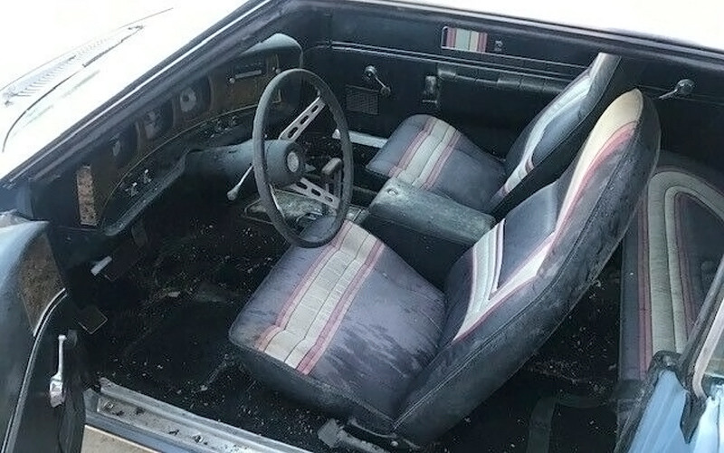 Here’s where the magic happens, on the inside. It almost looks like they had the driver’s window open when they hosed off the car, but they mention that the driver’s door doesn’t latch. That’s scary given the rodent population in your average barn. I get the idea of taking photos of how a vehicle looked when you pulled it out of a barn, but I don’t see any harm in spending five minutes vacuuming them out first. The Pierre Cardin interiors were wild and cool at the same time, two things that don’t always go together.