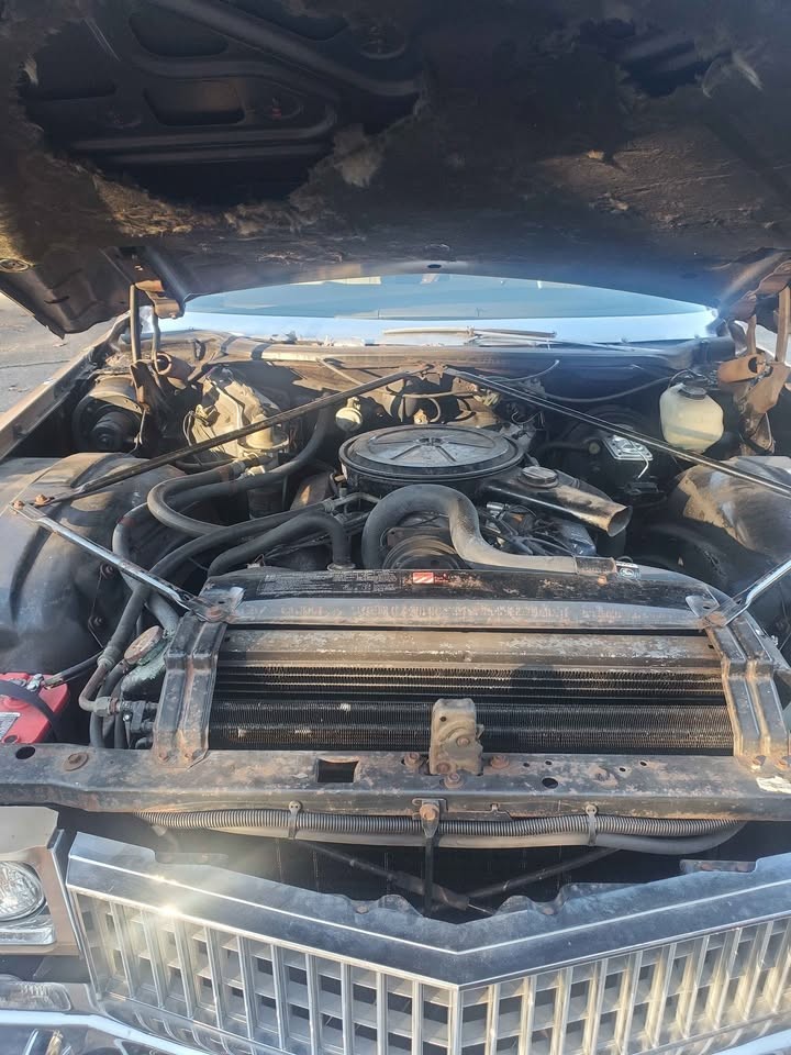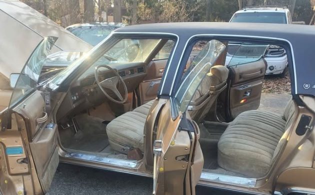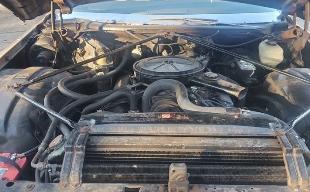 Power! Yeah sort of, the outsized 472 CI (7.7 liter) V8 engine, the only powerplant available, squeezed out a measly 220 net HP. It’s a torque-rich engine, however, so it should get the job done adequately. One source that I encountered claimed an eleven-second zero to 60 time – not a world beater but who drag races a Cadillac Brougham? Backing up that huge engine is a Turbo-Hydramatic 400 three-speed automatic transmission. The seller states, “car runs and drives like new, smooth everything.”