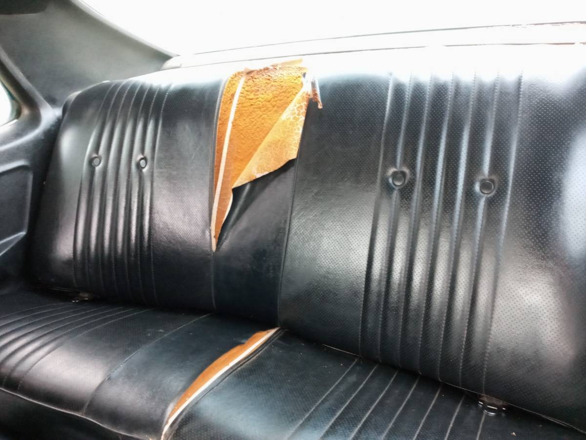 Whenever we see loose fitting seat covers, we assume the worse. Figure on new upholstery fore and aft, as well as carpeting because what’s there is pretty grungy. The dash pad and one door panel look good, but we don’t know if the headliner needs to be added to the shopping list. But while you’re on the hunt, see if you can snag a set of trim rings for those rally wheels (and get the wheels powder-coated).