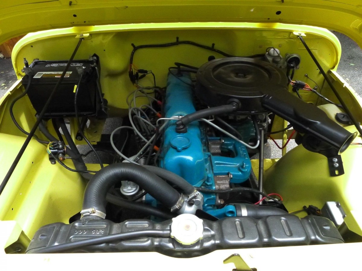 My dad bombed around during the 1970s in a plain old red CJ-5 with a white hard-top. Sure, it lacked the sweeping decals, curved front bumper, dash upholstery, and two-tone seats offered in the appearance package of the Super Jeep. But fancy graphics and nice upholstery don’t do much to improve ride quality. My bones still haven’t fully recovered from the 200-mile jilting I took sitting on the rear wheel well (dad’s Jeep had no backseat) during a trip to the beach one summer! His CJ-5 rode on stock steel wheels painted white, just like those of a Super Jeep. And the story behind the creation of this rare appearance package is AMC came up with the design as a result of a shortage of aluminum wheels needed for Renegade models. Production numbers are unknown but Jeep folklore suggests about 300 were made in 1973 and its believed very few survive today. Six body colors were offered and the seller claims this Jeep, repainted in original Daisy Yellow, is rarer than most. The Jeep’s original top has been replaced by a NOS vinyl soft top, according to the seller.