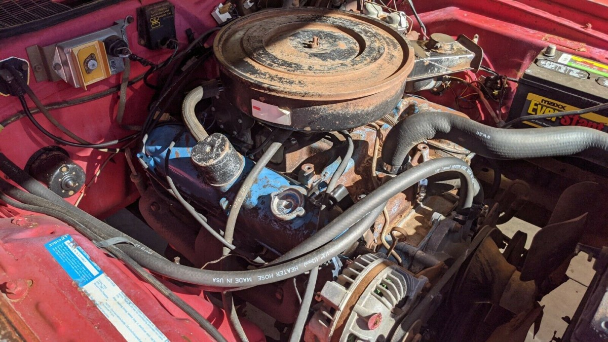 New upholstery, carpeting and a dash pad may be all that is required for the interior. The seller removed the seats to no doubt check out the floorboards and they all look solid. We’re told that the car was driven over from California around 2013 and then parked in a feed shack. The seller recently acquired it through a “tractor and gun” trade and then pulled it home. After changing the tires and fluids, he was able to get it running and says it performs well compared to its prior self.