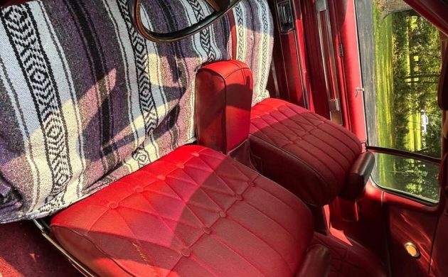 The interior photos are a bit sparse, but from what I can tell, things inside appear to remain fairly stock. A rip in the driver’s seat has been concealed by a covering that matches the red materials pretty well, with a couple of additional tears visible in the top area. Other components are looking better, with the power windows and door locks stated as still operating properly. It’s easy to believe that the seller is accurate when he says that this one is a major conversation piece that attracts attention wherever it goes, and while the cool-factor here is high, I’m not sure a very large number of potential buyers will be competing to bring this fabrication home. Any thoughts on this joining of a 1973 Oldsmobile Toronado and ’69 Chevrolet El Camino?