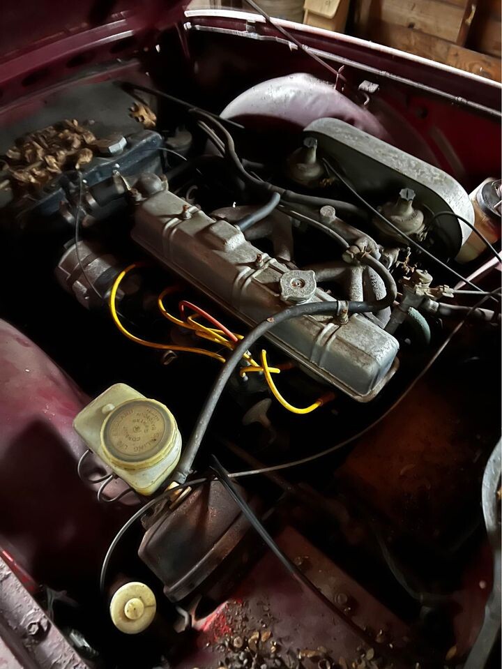 From the top-layer surfaces, it looks promising, but we all know the real bad news can reside underneath – especially on a vintage car from New England. The paint looks like it would present decently enough once cleaned up, and seeing the period-correct “red line” tires would seemingly indicate this Triumph hasn’t been messed with much (and at least had an owner who wanted it to remain as authentic to original form as possible.) The tires, shockingly, even appear to still hold air.