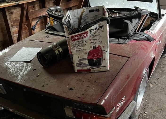 There’s a missed opportunity to tell the story of at least how this TR6 was discovered: did the longtime owner pass away? Did part of the garage door give way, allowing the outside world to see the long-forgotten sports car? Or was it slightly less romantic, with the seller simply buying a property out of foreclosure and discovering the car inside? Whatever the case, the TR6 has long been a favorite of sports car fanatics and British automobile afficionados, so someone loved it at one time; you don’t become a TR6 owner by accident.