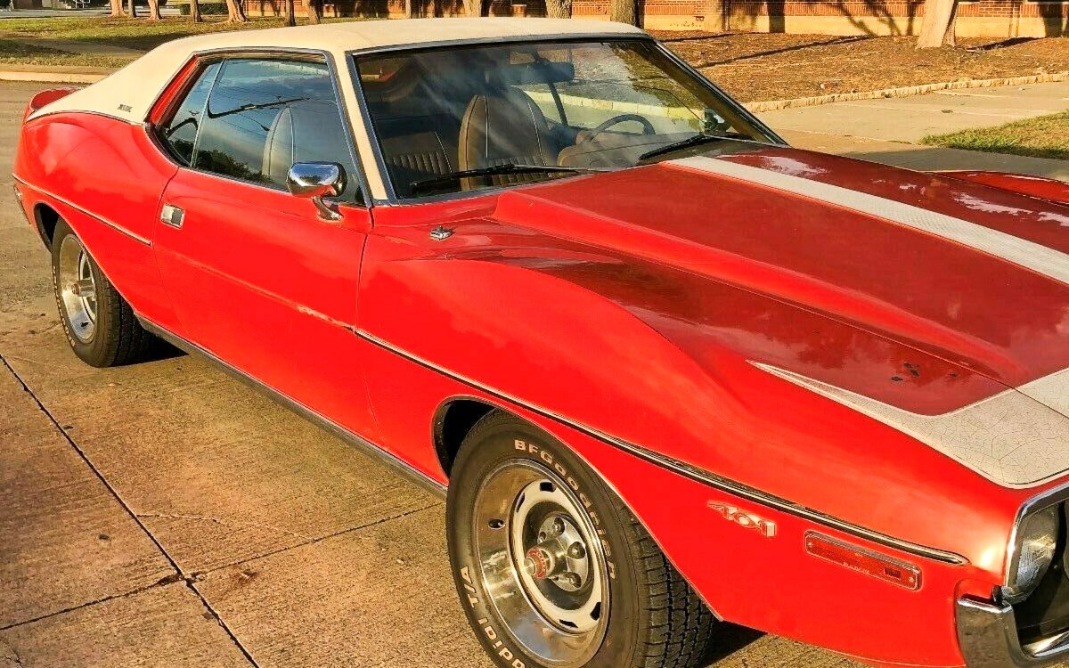 The Javelin was AMC’s 1968 entry into the pony-car realm. Along with it was a similar but shorter wheel-base, two-seater version called the AMX. In 1971, the Javelin was redesigned into a “fuselage” sculpted body design and the AMX became a performance variant of the Javelin. Of particular interest was the “Go Package” upgrade which this Javelin AMX possesses. Included in the “Go Package” was either the optional 360 V8 or the bigger 401 CI engine, “Rally-Pac” dash instruments and limited-slip differential and this is on top of the fiber-glass, cowl induction hood found standard on the AMX version of the Javelin.