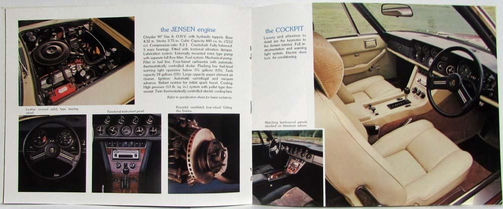 As you can see from this 1974 Interceptor brochure, Jensen was very proud of the 440 cubic-inch Chrysler V-8 engine fitted to late Interceptors (previously, the 383 had been used). The upgrade (?) to the 440 returned some punch to the car that had been lost as the Mopar V-8s were strangled by EPA emissions requirements. I’ve heard that the Jensen 440s received some special assembly versus standard engines, but I was unable to verify that through research. Do any readers have insights on this point?