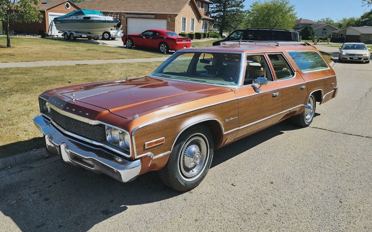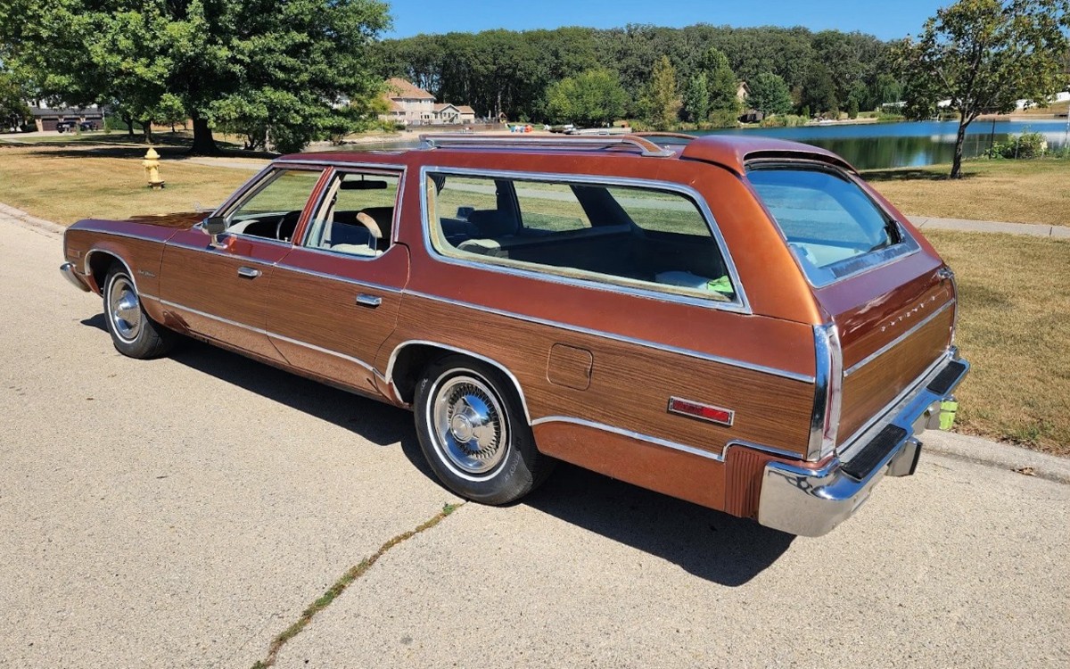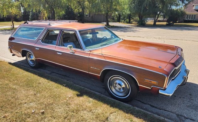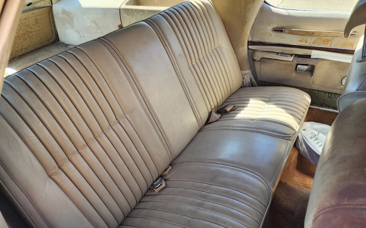 The title is almost as long as this car is, but at about 19 feet, this car has a big presence. Check out that front bumper, that has to weigh as much as a 2017 Kia. This car looks amazing in most of the photos, and the seller mentions what they did to the exterior to get it to look this nice. Most of the paint has been buffed, but they say the woodgrain was toast, as this was a West Coast car. Unfortunately, under the woodgrain was damaged paint, so they had it stripped to bare metal under the woodgrain, painted those areas, and then recovered it with new woodgrain.
