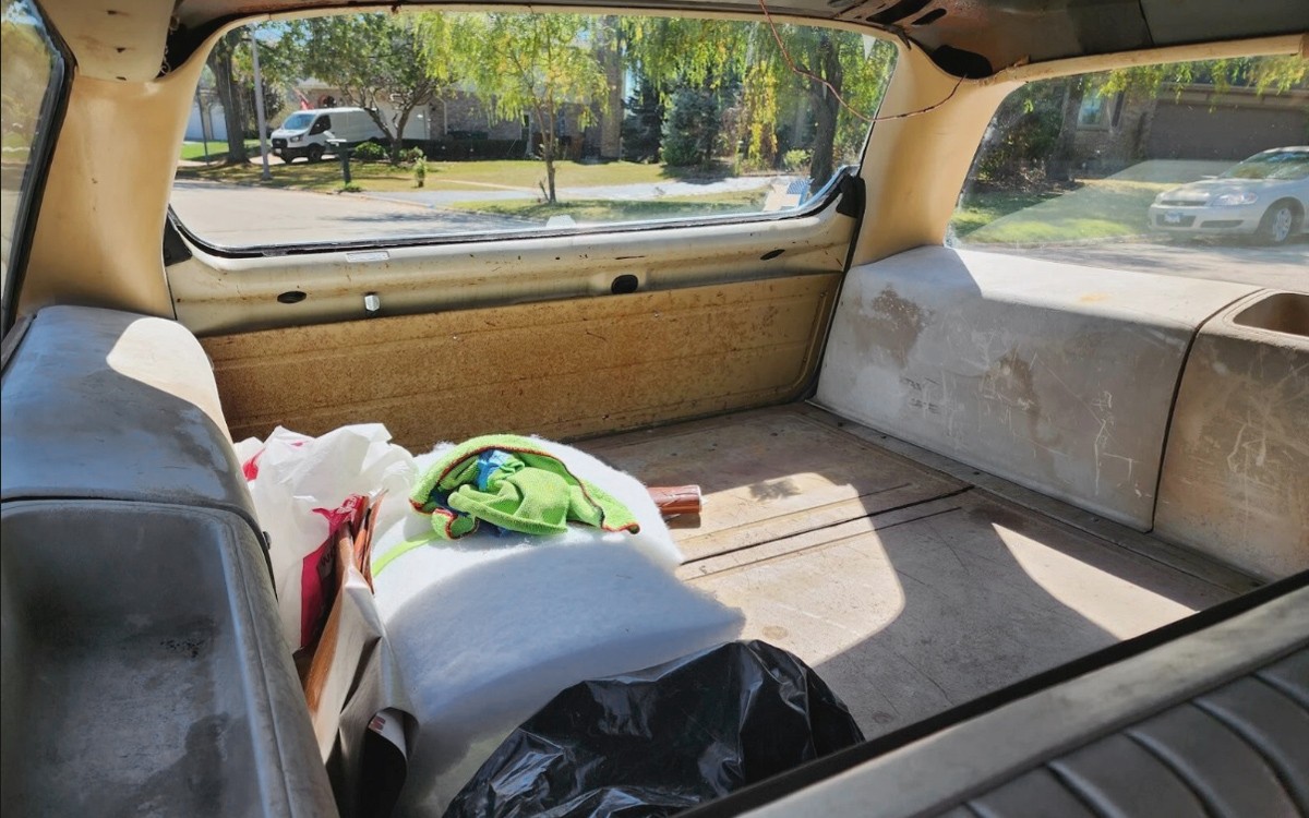 Interesting find. Good info in the ad. I suspect the seller got the paint/woodgrain back in shape (after significant cost) and decided to stop there, as there are several things which still need attention.