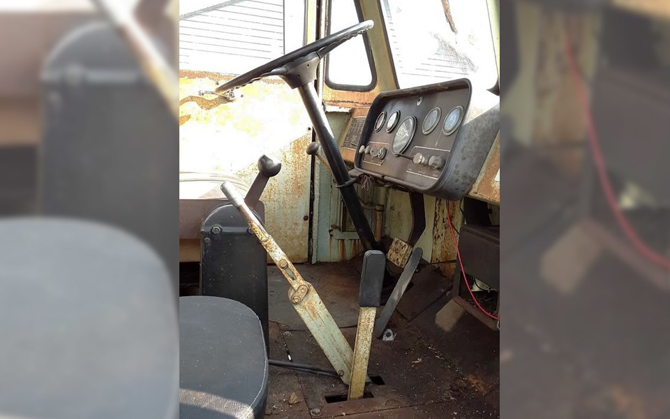The engine is a Chrysler-sourced industrial 318-cu.in. OHV V8 with 140 horsepower and 220 lb-ft of torque. How many of you instantly heard that starter in your mind? The G-40-E model had points, but the G-40-F, as seen here, has an electronic ignition, and it has a four-speed Allison automatic transmission; four speeds forward and one speed in reverse going to all four wheels. You don’t want to shift manually when you’re towing 100,000 pounds, which is the weight limit for this model. Would any of you have a use for this, or do you just want it as I do because it’s cool as heck?
