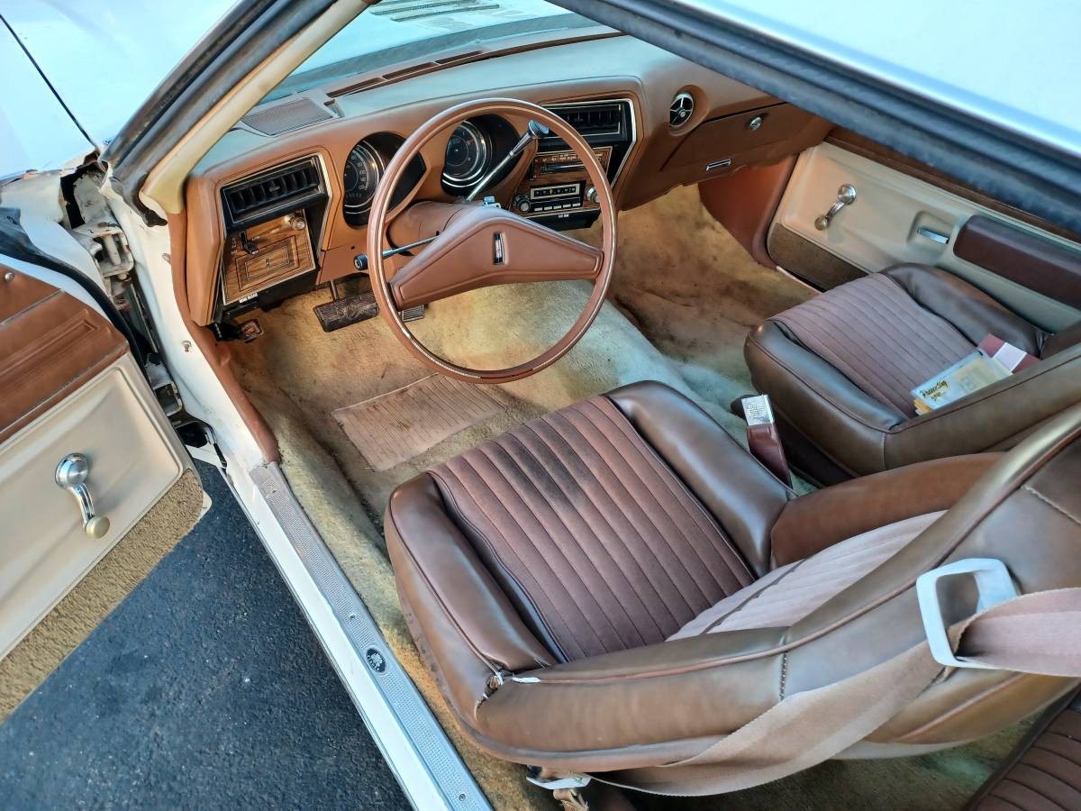 The brown and beige interior is so 1970s, but is a nice compliment to the Cameo White paint and gold striping and color-coordinated wheels. The original beige carpet is showing its age and could probably use a deep cleaning. The door panels look to be in very good shape and you forget how long these doors are on these A-body platform Colonnade coupes. And, it’s the 70s, so of course there are ashtrays fitted into those extended armrests.