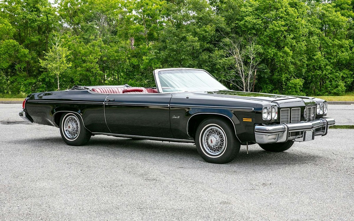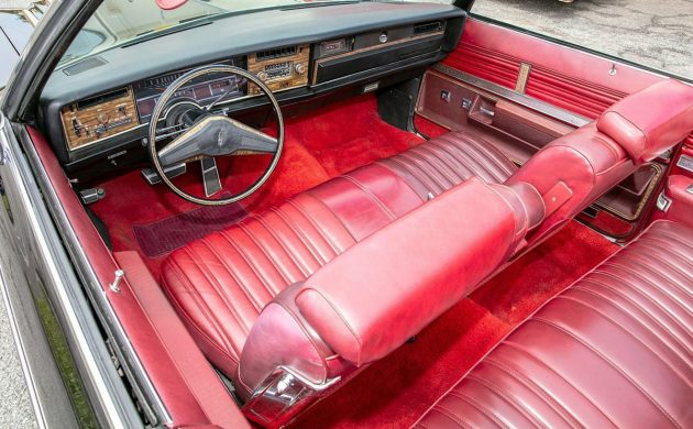 The clean engine is Oldsmobile’s famous 455-cu.in. OHV V8, which by 1975 was rated at 190 horsepower and 350 lb-ft of torque. Backed by a THM-400 sending power to the rear wheels, please check out the photos and let us know how much you’d pay for this black and red Olds Delta 88 Royale convertible.