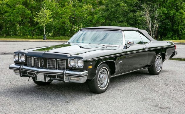 This black over red 1975 Oldsmobile Delta 88 Royale Convertible shows just under 59,000 miles on the odometer. Black has to be a rare color for this car or for any mid-70s Olds 88, I don’t know if I’ve seen another one in black, especially a convertible. This example appears nice in the over 140 photos (!) the seller has provided on this Hagerty Auction. It’s located in beautiful, historic Savannah, Georgia, and the current bid price is $4,000. Thanks to PRA4SNW for the tip!