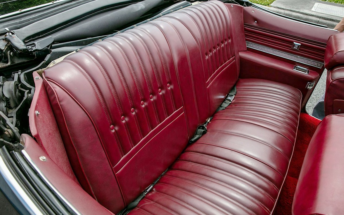The Cranberry vinyl interior looks great, and this car is loaded as you’d expect in a Delta 88 Royale. We’ve seen 10 1975 Olds 88s here on Barn Finds, and nine of them have been convertibles. As I thought, none of them were black. The back seat also looks perfect, and the seller has included over 40 underside photos (!), and it’s showing some normal surface rust. They say there has been a “rust-through patch” on the rear, but we don’t know where exactly. They also say the convertible top “header” needs repair, there is a stain on the passenger side carpet, and a few other things, so it isn’t perfect, but it looks very nice overall in the photos.