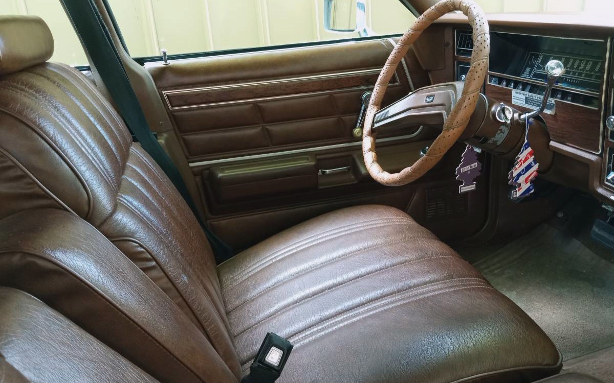 If Barnaby Jones would have had a 1977 LTD four-door sedan, or as brochures say, a 4-Door Pillared Hardtop, it may have looked similar to this one. Probably with a custom milk dispenser on the dash. The exterior of this second-generation LTD (model years 1969 through 1978) looks great from what I can see. Being in Michigan, though, and with 156,000 miles listed, there is undoubtedly some rust on this car somewhere. I just don’t see it, other than surface rust on the front and rear license plate holders.