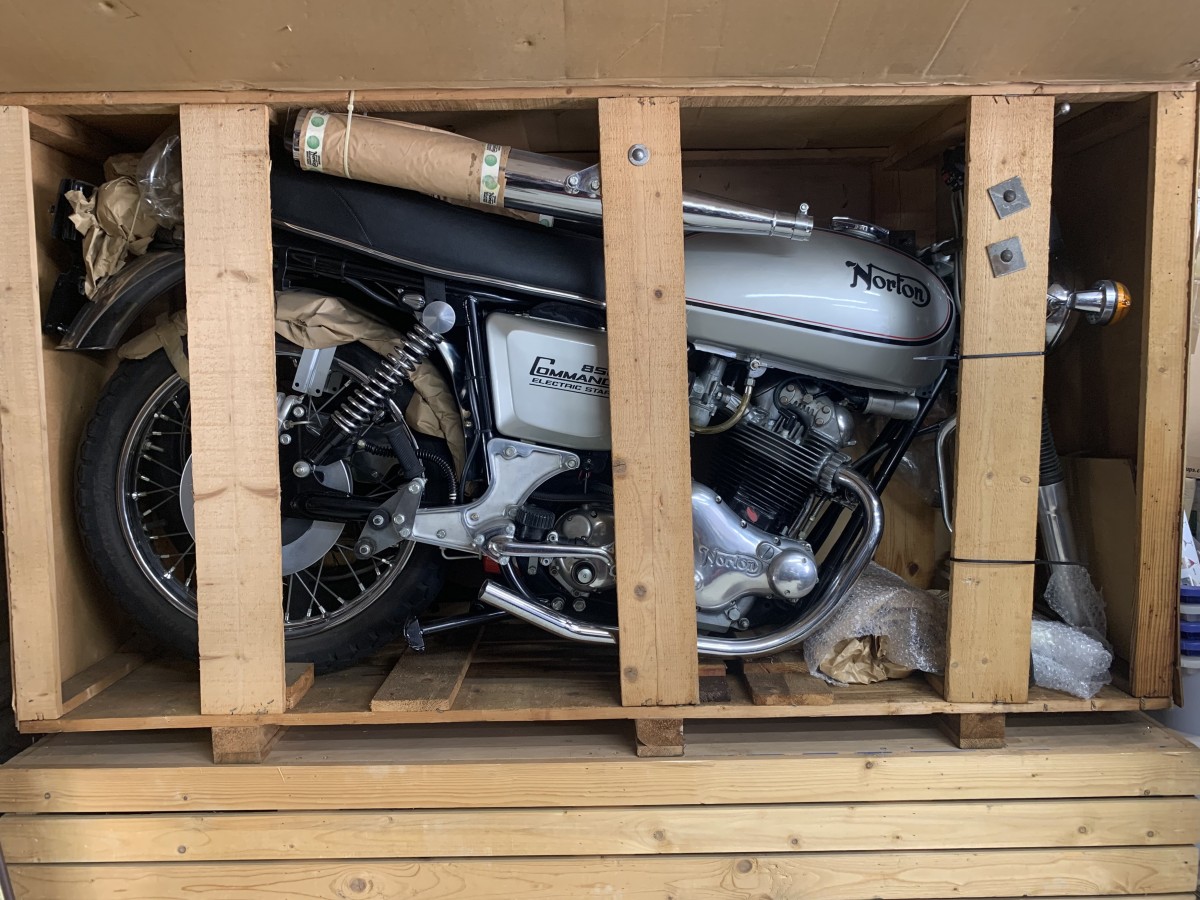As a kid in the 60’s, Norton was this exotic name, before the Asians, that would beat any bike the world had to offer. It was well known. Didn’t see many in Wis. for obvious reasons, even though, the “Limey’s” were okay, I don’t think there was a dealer in town. Guy across the street had a Royal Enfield, but hardly ever, a Norton. Now, this comes out to about $25-$30 g’s( in dollars), like all “sitting in a crate for years”, it’s going to leak oil like a,,,well, vintage Limey, more so, and will need everything. Again, if the crate is your thing, then hang it on a wall for all your millionaire buddies to gawk at, but, I’d probably just go find a nice one, already “sealed up”, be done with it. I’ve had many motorcycles, and would have to say, from what I’ve heard, the Norton was THE nicest of them all.