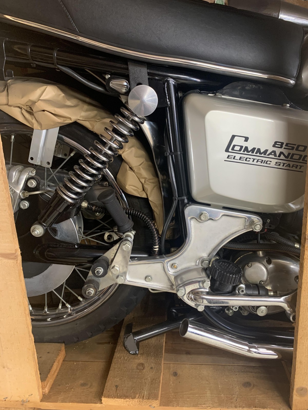 As many know, I’m not fond of things in a crate, and the wild price tags to boot, but this is a neat find. Unpack it? Wait, let me get my rolled up newspaper and swat da’ backside across the haid, OF COURSE UNPACK IT,,,sorry, it’s just, it should be a crime to have a beautiful machine, like a “Snortin’ Norton 850”,,,in a freakin’ crate,,,for goodness sake. I think I made my point.