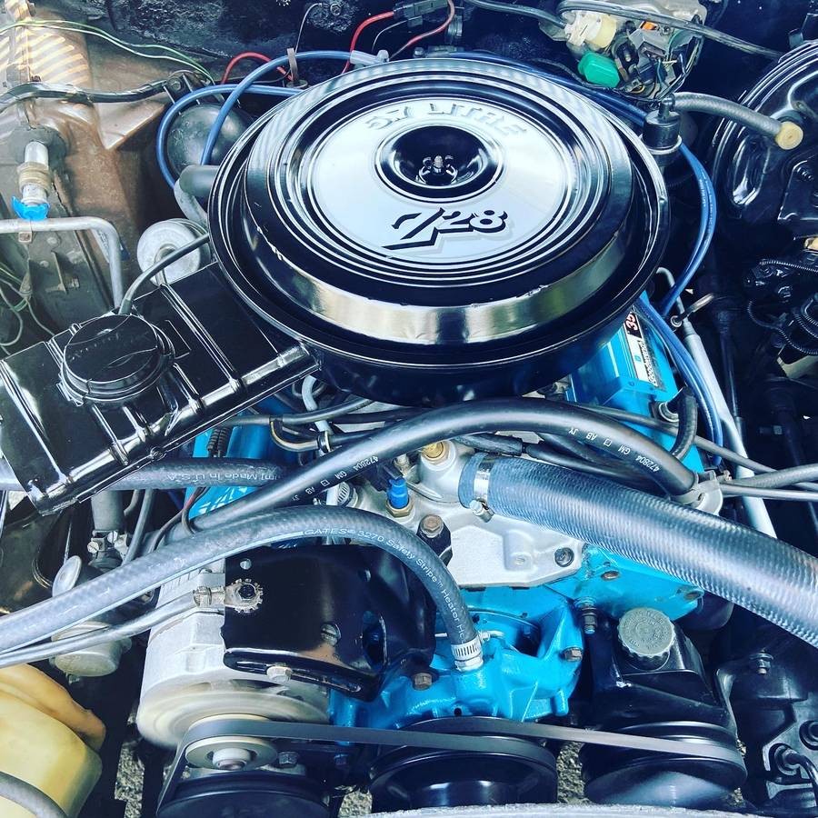 The 350 cubic inch V8 engine is a remanufactured motor that was professionally installed and has about 10,000 miles on it. The transmission and brakes have also been rebuilt. The car was equipped with air conditioning from the factory but that has been removed and the parts are included with the car.