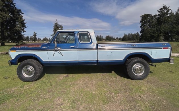 Appearing to be a solid survivor, and an interesting one with its exposed surface rust on the hood and roof (or is that patina?) (crickets), this 1978 Ford F-250 Ranger SuperCab 4×4 is listed here on eBay in Lakewood, Washington. The seller has it listed as a no-reserve auction, so this one is going to a new owner. The current bid is $8,700 with three days left on the auction.