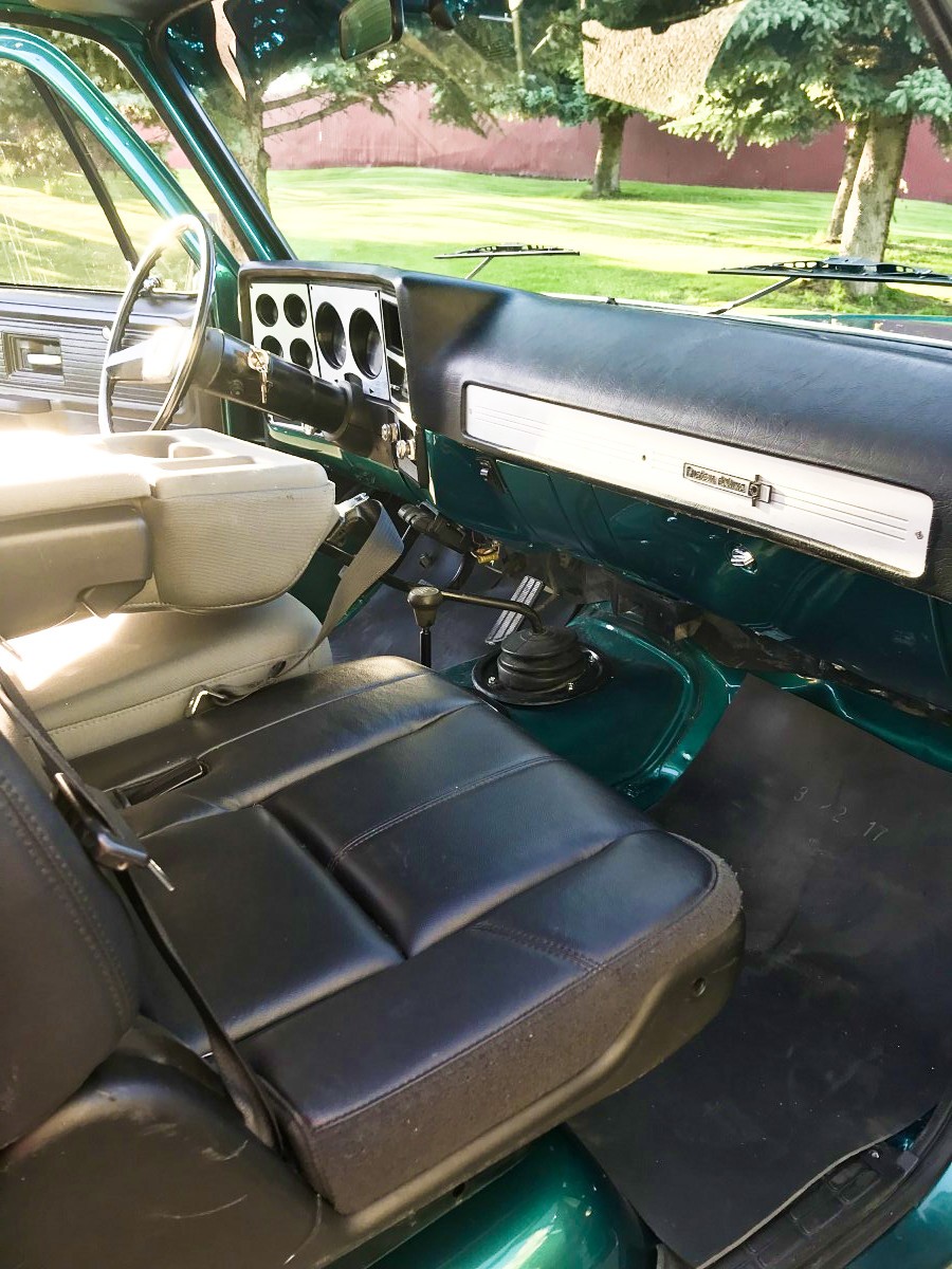 I like the fact we get to see pics of the real floor not just some dirty carpet hiding some surprises… Being a Custom DeLuxe it’d be the bottom line trim level for ’79 that came off the factory floor with vinyl floor covering. This is essentially what I call a TRUCK and as long as it has PB and PS I’m fine with that. Being 4×4 AND a 4spd really adds value in my book. Great K20 from the Famous Potatoes state!
