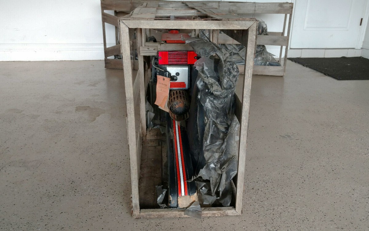 Meh, we pretty much went through most of the Sno-Runner stories last time. I bet there’s a warehouse in Appleton ( or where ever) that still has undiscovered stacks of these. I’d bet the motor is toast, 2 cycles don’t sit well, and after 40 years, probably stuck tight. I always think of the workers, my fellow Wisconsinites, that came to work everyday, designed these ( poorly), built these things, someone crated them up, some trucker hauled them to a warehouse,,,all for nothing.