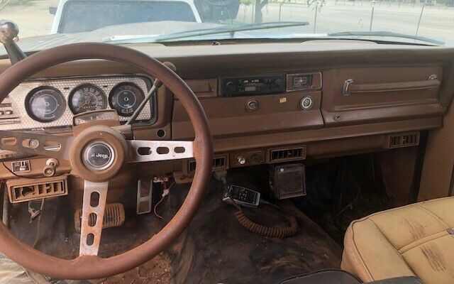 As much trouble as I had with my ’78 Cherokee,(old story), I still like these, it’s why I bought the Cherokee in the 1st place. Like Dave sez, Jeep sold a ton of these. The thing that makes it rare today, is most of them, like mine, folded in half. I think this was the nicest rendition of the full size Cherokee, but knowing what I know about late 70’s Jeep Cherokee’s and looking at this, I wouldn’t touch it with a 10 foot pole. Nicer Cherokees come up from time to time, might not be a “Golden Eagle”, but it’s all graphics, and a Jeep Cherokee is a Jeep Cherokee. I wouldn’t waste a penny on this one. And what is that hose running along the frame, aux. rear heat?