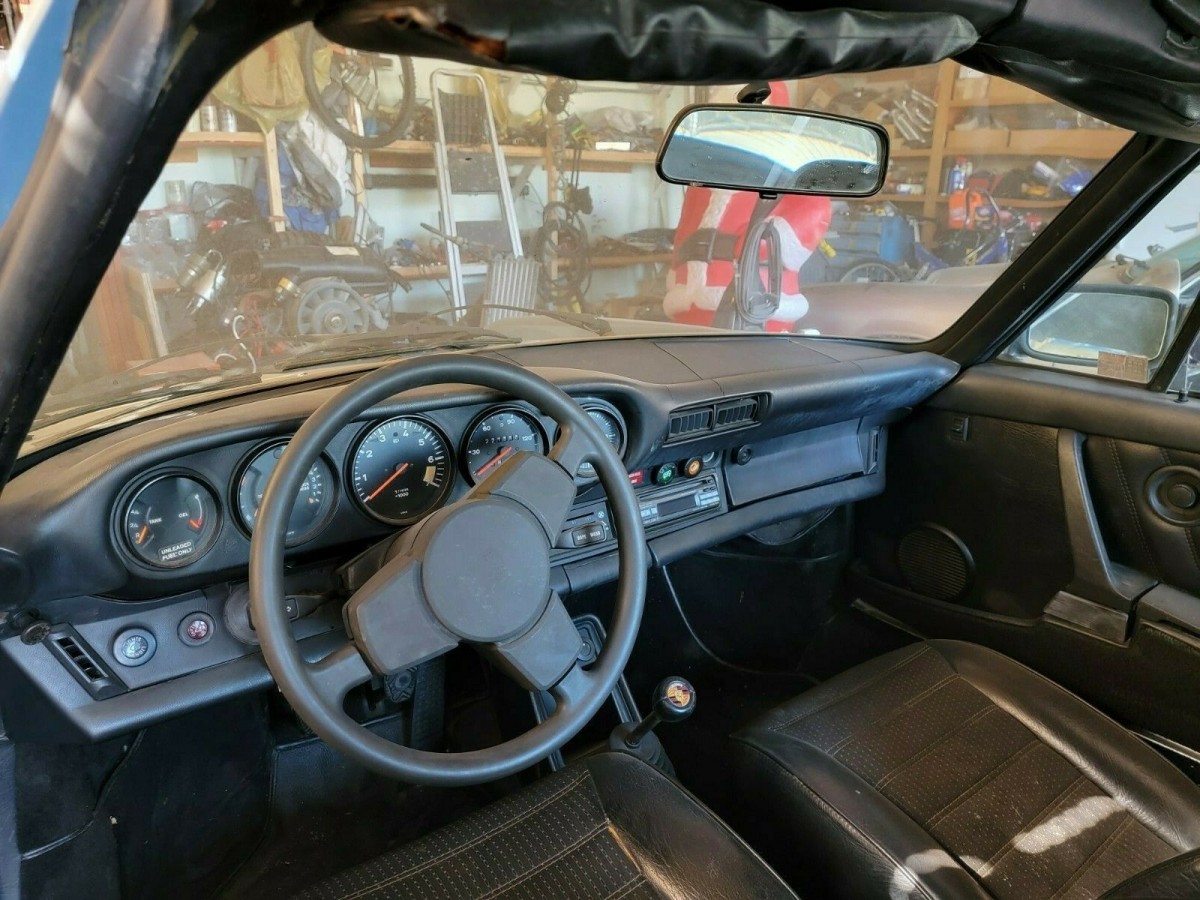 To the seller’s credit, the engine bay doesn’t appear to be in significantly worst cosmetic conditions following the engine fire. It looks clean, but certainly not restored. It’s a shame that the fire happened right when the seller was attempting to fire it up, as it seems likely that he had just gotten it sorted out enough that it would fire up and maybe even let him take a quick sunset cruise around the clock. That didn’t happen, and I suspect he’s thrown his hands up and is done with this 911 and the heartburn it has caused. The light blue paint is attractive, and even better is the black interior it’s paired to. Once it’s been brought back to life, this slightly smokey 911 SC Targa will be an item for sure.