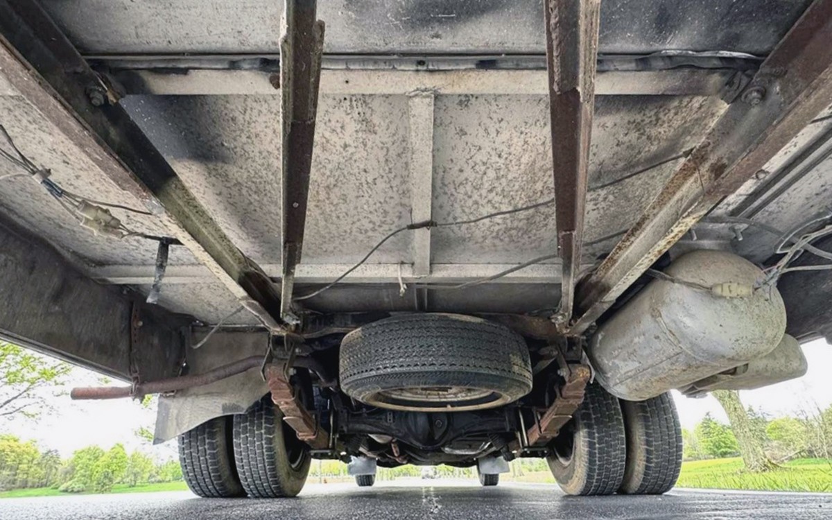 Unclear as to whether the OEM rear axle has been replaced with the full-floating bearing 6-bolt-wheel “one ton” version. If so the thing at least has possibilities but if not it is a death-trap because the OEM axles were prone to snapping the axle ends due to overloading.
