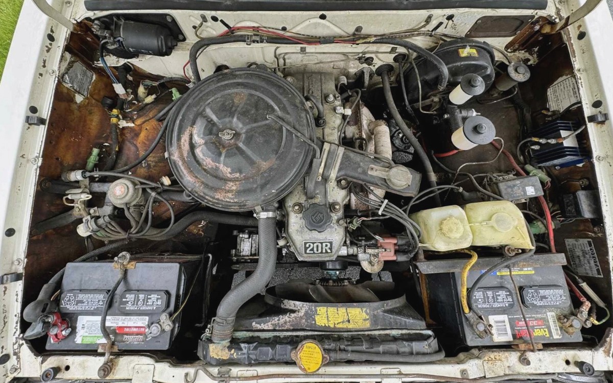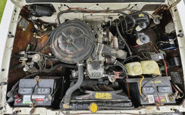 The engine is Toyota’s 20R, as you can see, which is a 2.2-liter SOHC inline-four with 90 horsepower and 122 lb-ft of torque when new. This one has new plugs, wires, filters, and the spare on the front is new. I sure hope the tires aren’t original to 1979. It runs and drives as it should, and everything works. Keystone says this rig gets 17 mpg, that’s outstanding for a motorhome.