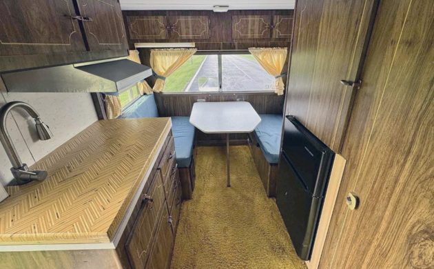 The camper portion looks outstanding, perfectly dated with maybe an upgrade or two – the counter over the sink/cooktop, and they say the fridge and freezer are new. The faucet is clearly not from 1979, and there are probably other updates for the sake of convenience. I love a rear dinette model (there were three on Keystone’s lineup for 1979), but I’d be sleeping in the cabover bed myself. The cooktop could use some help, but everything is said to work as it should. The bathroom appears to be missing the toilet, and I don’t see a sink or shower. I really like this one. Could you live in a camper this small?