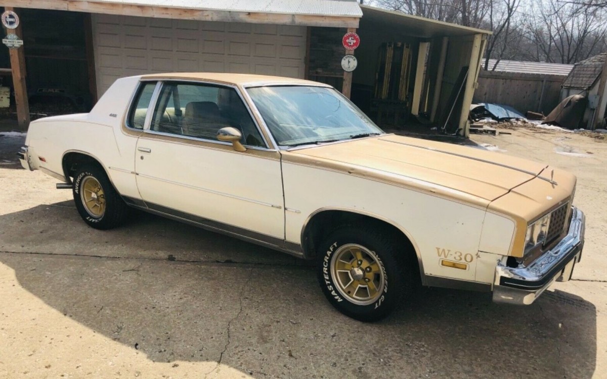 The 442 package came in two colors combos, gold over black or gold over white. The latter is the rarer combo, so the seller isn’t exaggerating with that claim. The matching gold wheels are a great look, and while it’s still a far cry from the original McCoy, a 1980 442 is also way cheaper. The seller notes this particular car sat parked in Kansas since 2005 before he acquired it and threw some basic tune-up parts at it, including new radiator hoses, clutch fan, alternator, belts, spark plugs, plug wires and more.