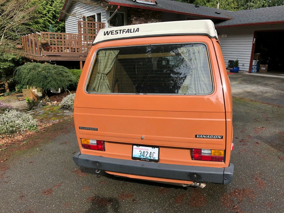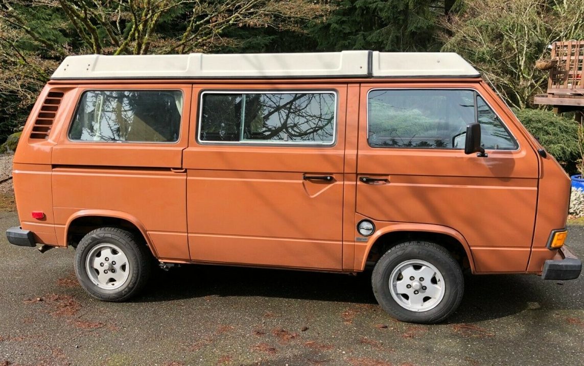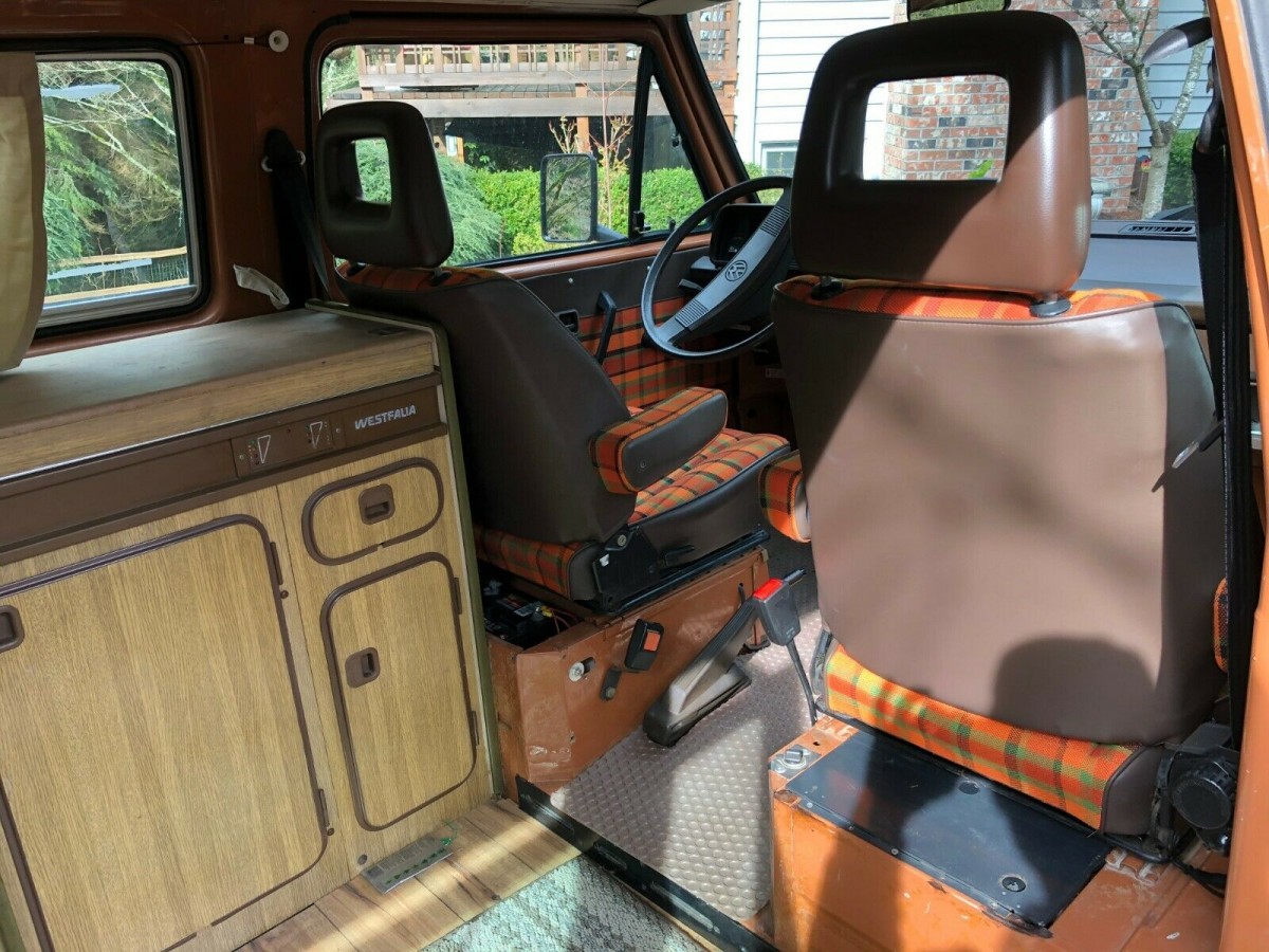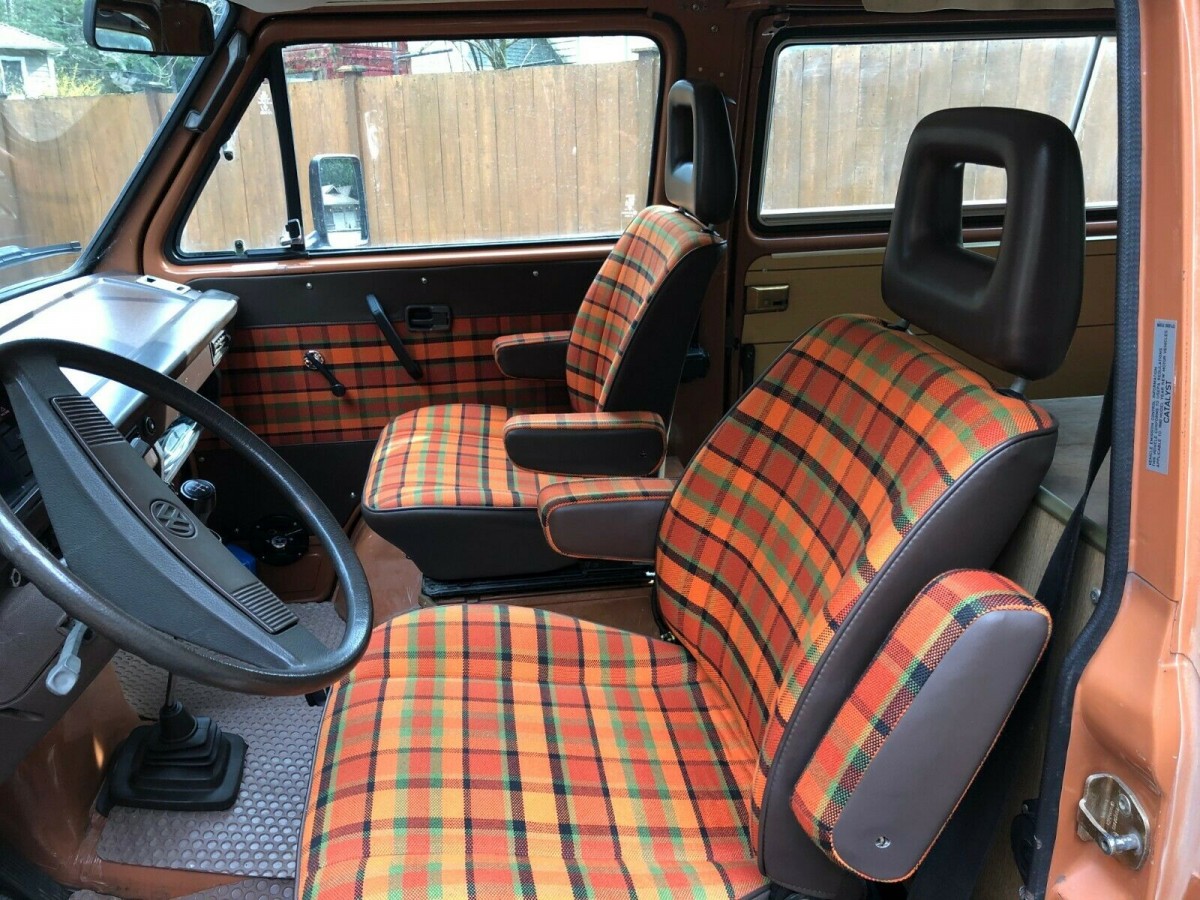 With an orange paint color, the body of this Vanagon catches the eye. The seller does note that the rooftop canvas is original and will need replacement, but other than that, there aren’t any noteworthy flaws with the exterior.