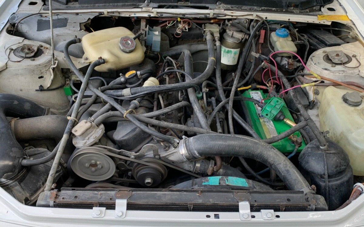 Talk about a missed opportunity: detailing the engine compartment. Or, I think there’s an engine under that nest of wires and hoses, wow. I see why they put a big plastic shroud over engines these days if this is what they look like otherwise. Cool looking engine or not, it’s a tough and reliable one being Peugeot’s 2.3L inline-four turbo diesel with 80 horsepower. This car apparently was in storage for 25 years before the BaT auction this past January and has had a ton of work done to it since then to get it into great operating condition. Have any of you owned a Peugeot 505?
