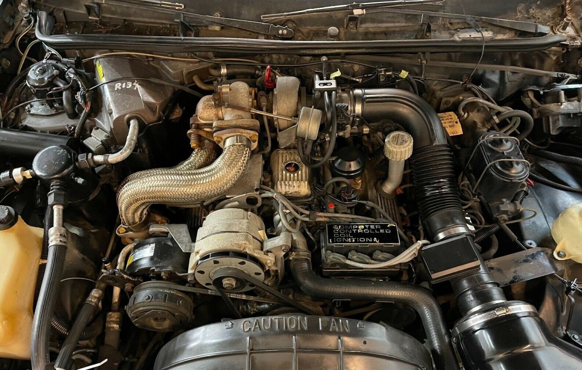 Inside the car, the interior has the same well-used look as the exterior. The driver’s seatback and headrest both have some tears and worn spots and hopefully could be repaired without having to replace stuff. The leather on the seats is cracking a bit, but that just adds character to the whole thing. If you turn on the ignition, the car is said to start right up and run well with no smoking, knocking, or pinging. However, a tune-up is needed for optimum performance, and the brakes about due to be redone, but the turbo is said to be just fine.