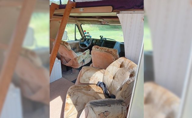 This is very interesting. I’ll have to say that some work went into taking the back half off, and mating it with the center and front sections, I’m guessing a center section was taken out but the workmanship from what I can see in the photos looks pretty good. I’ll admit……. That ramp looks a bit sketchy, along with that little ladder there to climb in as well. It’s probably a 350. 350s were very commonplace in one ton (3500) series chassis for pickups and vans and cab and chassis as well. Those front seats definitely look like an inviting place to siak up all the miles.